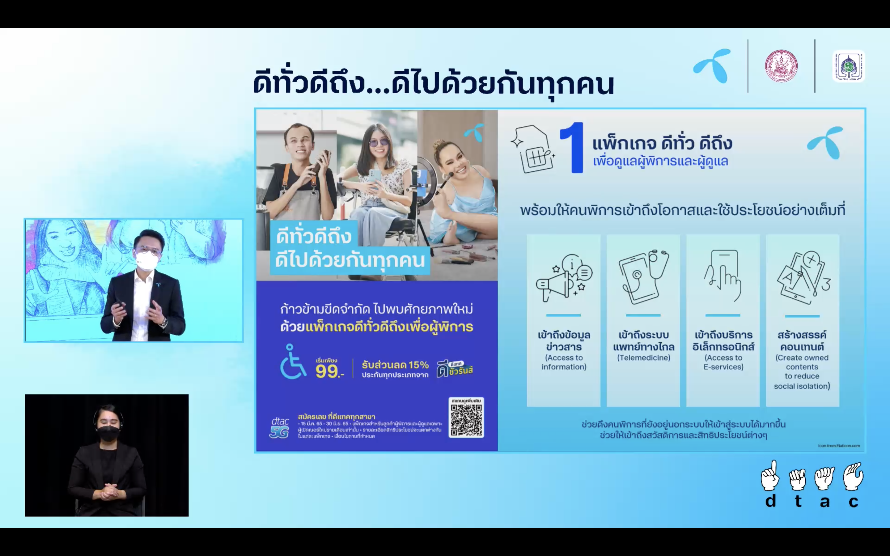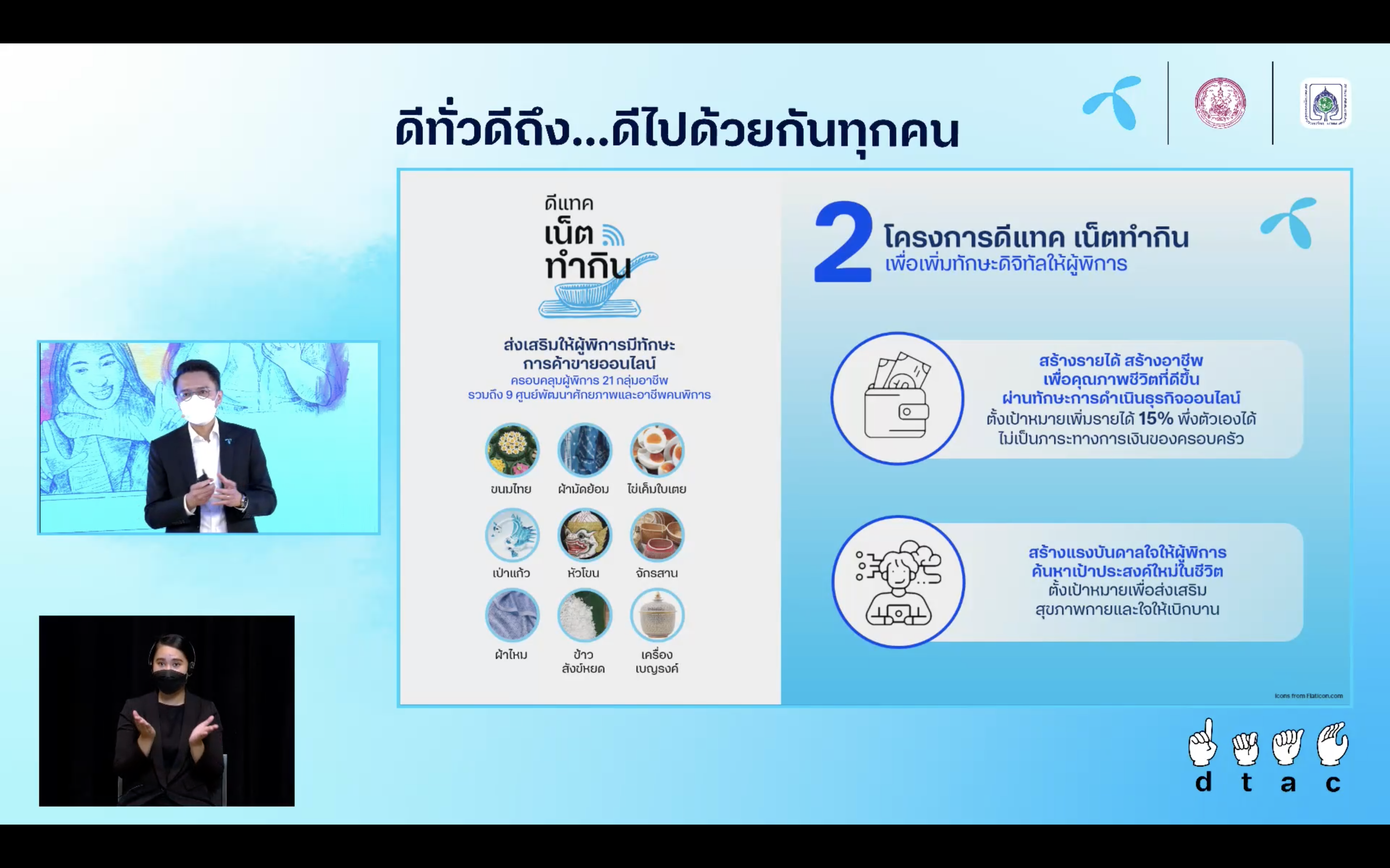 ดีแทคร่วมกับกรมส่งเสริมและพัฒนาคุณภาพชีวิตคนพิการ และ สมาคมคนหูหนวกแห่งประเทศไทย เปิด 3 โครงการ ต่อยอดศักยภาพผู้พิการ ให้ดีทั่วดีถึง ดีไปด้วยกันทุกคน