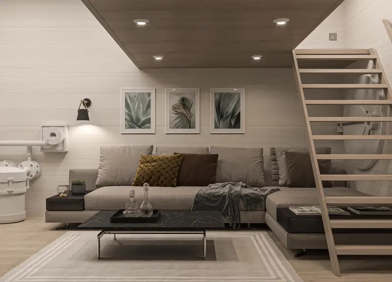 จากภาพ: มุมครัวที่ให้บรรยากาศเหมือนในคอนโดหรู ซึ่งจะทำให้คุณเพลิดเพลินกับการทำครัวระหว่างหลบภัยใต้ดิน
