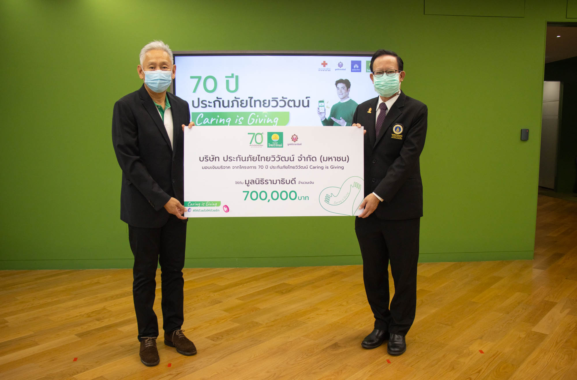บริษัท ประกันภัยไทยวิวัฒน์ จำกัด (มหาชน) โดยนายจีรพันธ์ อัศวะธนกุล ประธานเจ้าหน้าที่บริหาร มอบเงินบริจาค จำนวน 700,000 บาท ให้กับ มูลนิธิรามาธิบดี โดย รศ.นพ.วิชัย ประสาทฤทธา กรรมการบริหารมูลนิธิรามาธิบดีฯ เป็นตัวแทนรับมอบ เพื่อร่วมสมทบในการจัดซื้อเครื่องมือแพทย์ ให้กับสถาบันการแพทย์จักรีนฤบดินทร์ ให้สามารถรองรับการรักษาผู้ป่วยได้อย่างทั่วถึง และเพื่อเป็นการเตรียมพร้อมรับมือดูแลผู้ป่วยวิกฤตจากโรคต่างๆ ซึ่งที่ผ่านมา สถาบันการแพทย์จักรีนฤบดินทร์ได้เป็นศูนย์กลางการรักษาผู้ติดเชื้อโควิด – 19 ของโรงพยาบาลรามาธิบดี โดยเครื่องมือและอุปกรณ์ทางการแพทย์ที่จำเป็นต้องจัดหาเหล่านี้เป็นปัจจัยสำคัญในการส่งเสริมการรักษาพยาบาลให้เกิดประสิทธิภาพสูงสุดแก่ผู้ป่วยต่อไป