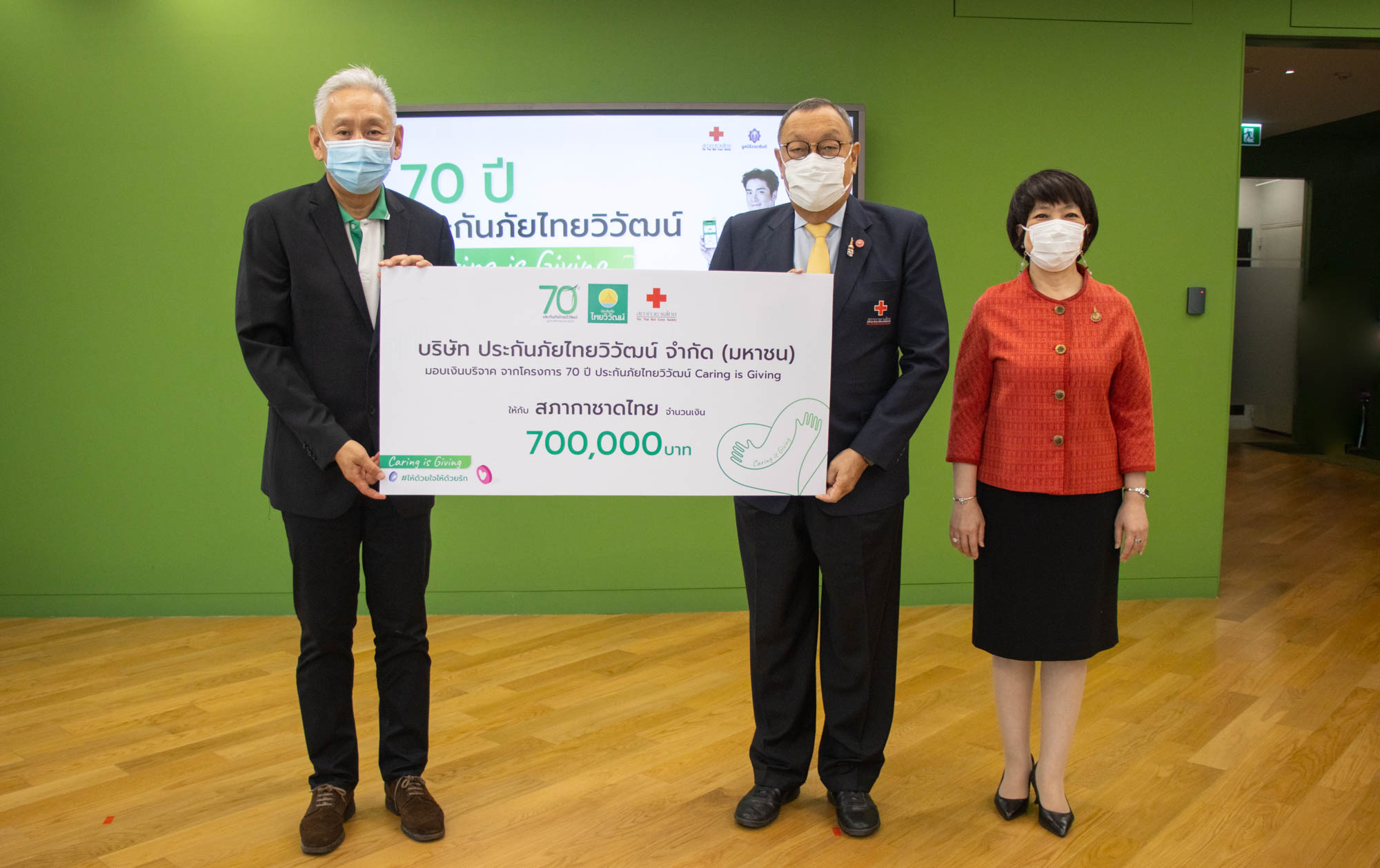 คิดเผื่อเพื่อทุกชีวิต สร้างหลักประกันที่มั่นคงให้คนไทย เนื่องในโอกาสครบรอบ 70 ปี บริษัท ประกันภัยไทยวิวัฒน์ จำกัด (มหาชน) หรือ TVI มอบเงินบริจาคในโครงการ “Caring is Giving ให้ด้วยใจให้ด้วยรัก” ให้ 3 หน่วยงานได้ แก่ สภากาชาดไทย, มูลนิธิรามาธิบดีฯ และมูลนิธิยุวพัฒน์ ซึ่งเป็นหน่วยงานที่มีพันธกิจเพื่อส่งเสริมสวัสดิภาพด้านสาธารณสุข และการศึกษา แก่เด็กและเยาวชน รวมทั้งสิ้น จำนวน 2,100,000 บาท