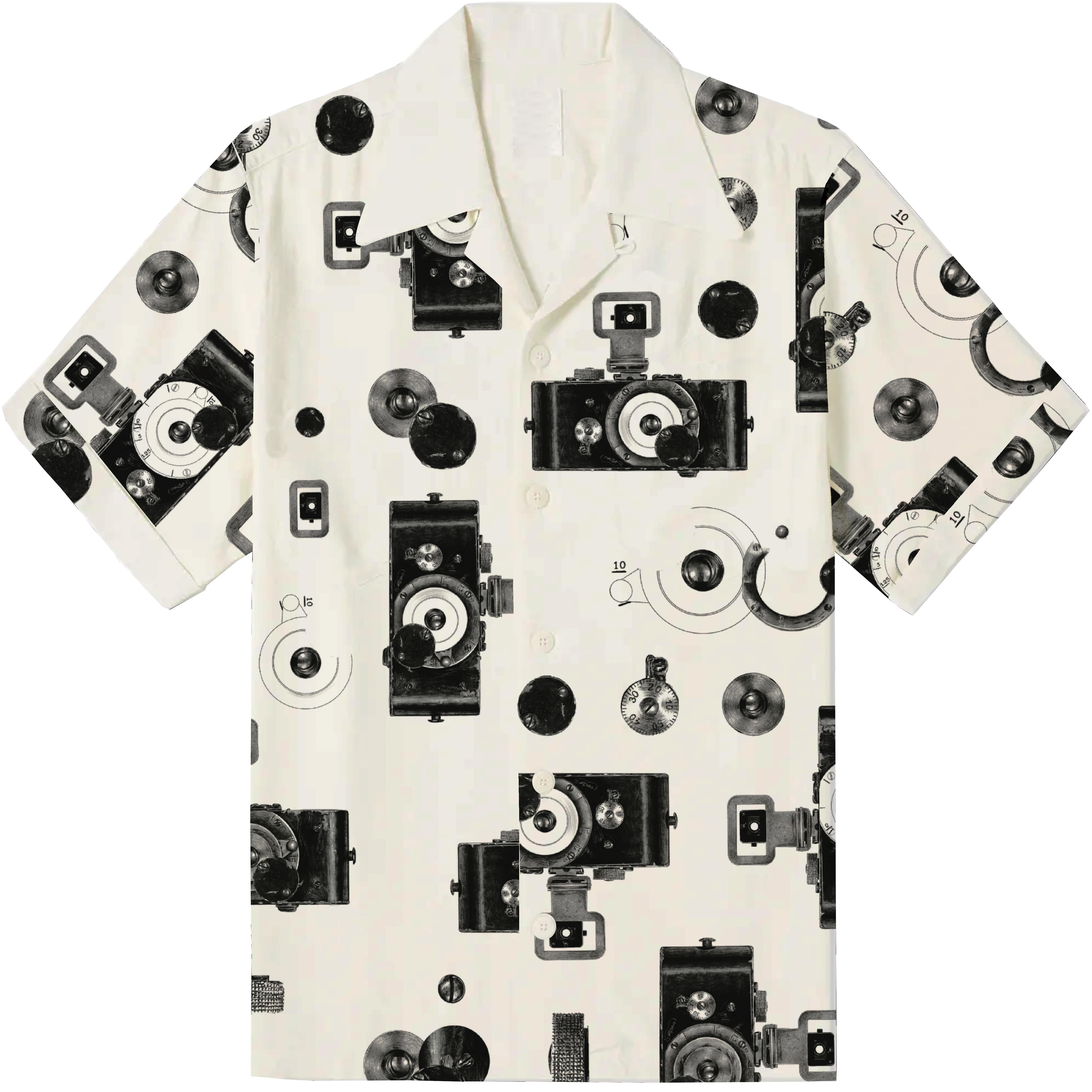 ปิดท้ายด้วยคอลเลกชั่นสุดท้าย “ภาพสเก็ตช์กล้องไลก้ารุ่น Ur-Leica” ด้วยความที่ชอบสวมใส่เสื้อฮาวายและเชิ้ตทรงคิวบาอยู่แล้ว จึงคิดหลุดกรอบออกจากการเป็นเสื้อยืด เติมภาพสเก็ตช์กล้องรุ่นแรกสุดหายาก อย่าง Ur-Leica ที่มีขนาดใกล้เคียงกับของจริงมากที่สุดลงไป จัดวางเป็นชิ้นส่วนวัสดุ และสเต็ปการวาด ทำให้ได้ลวดลายที่โดดเด่นไม่เหมือนใคร ยิ่งสวมเสื้อคอลเลกชั่นนี้พร้อมสะพายกล้องไลก้าด้วยแล้ว จะเท่จนแยกไม่ออกเลยว่าอันไหนลายเสื้อ อันไหนกล้องจริง