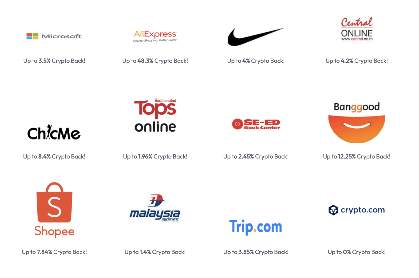 นอกจากนั้นเรายังสามารถเลือกสกุลเงินของเหรียญคริปโทที่ต้องการได้จาก 30 สกุลเงินที่มีให้ โดยแต่ละร้านจะได้เงินคืนในรูปแบบของคริปโทที่แตกต่างกัน อย่างในไทยนั้นก็รองรับทั้ง Tops Online, Shopee หรือร้านหนังสือ SE-ED
