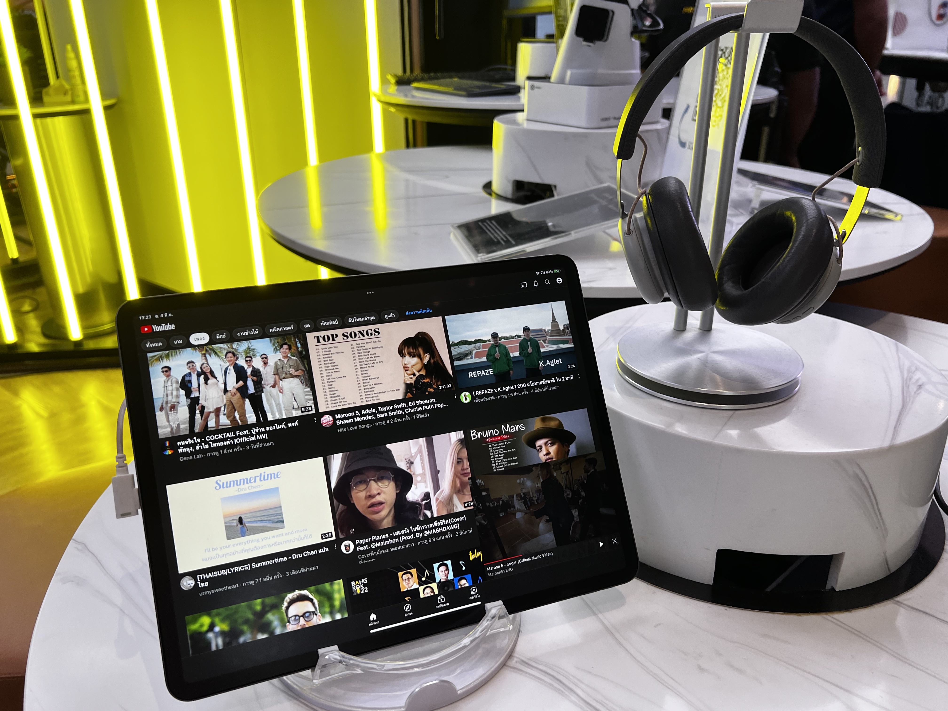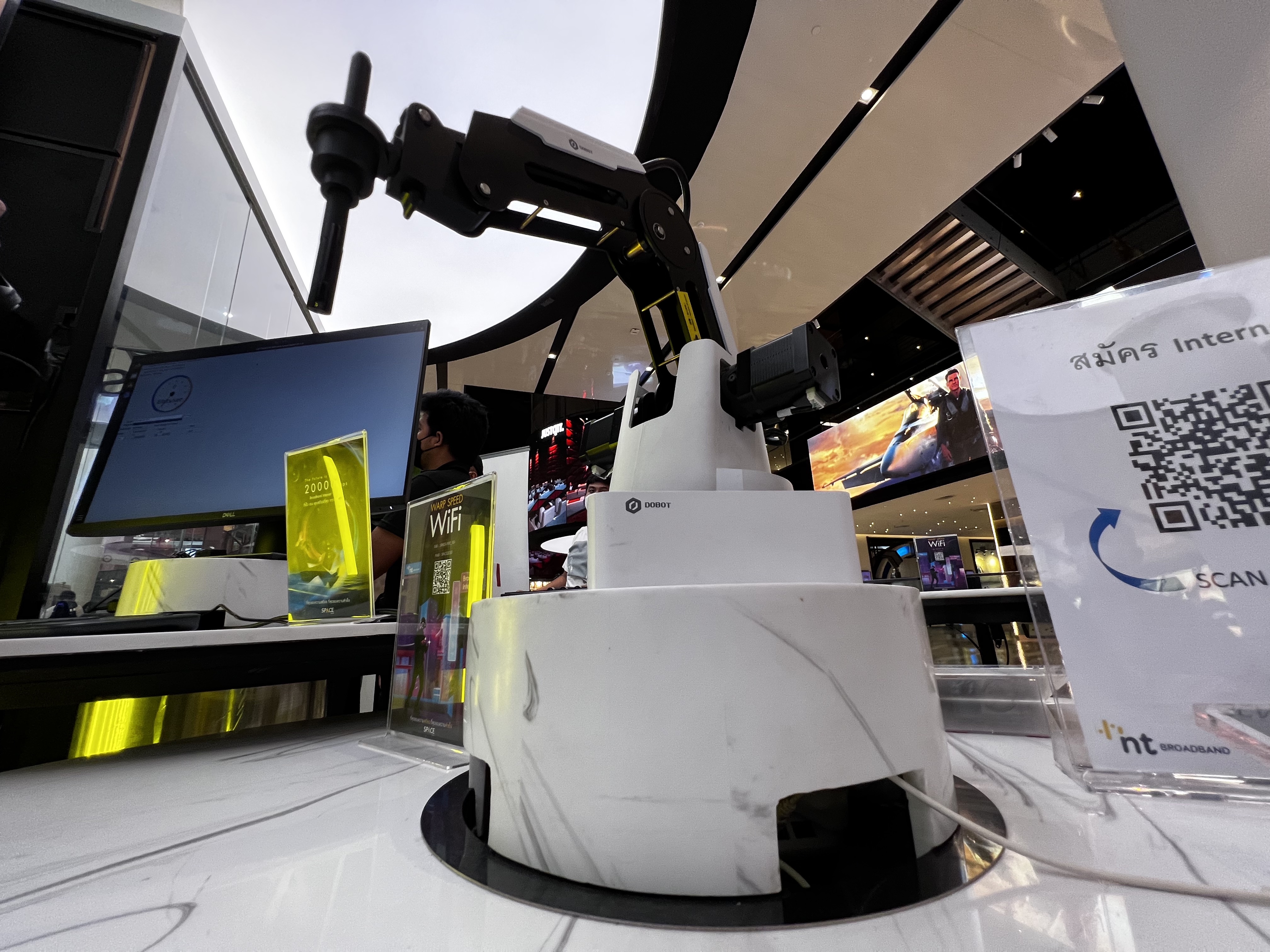 ไม่ว่าจะเป็นแขนกลที่เชื่อมต่อกับแท็บเล็ต เราเขียนอะไรบนจอ แขนกลก็จะเขียนตามทันที หูฟังไร้สายสำหรับฟังเพลงสตรีมมิ่งความละเอียดสูง จนไปถึงแว่นตา Augmented Reality ที่เห็นภาพสามมิติซ้อนทับลงบนโลกแห่งความจริง นอกจากนั้นเขายังมีคอมพิวเตอร์ให้ลงทดสอบความเร็ว (Speed Test) ด้วย