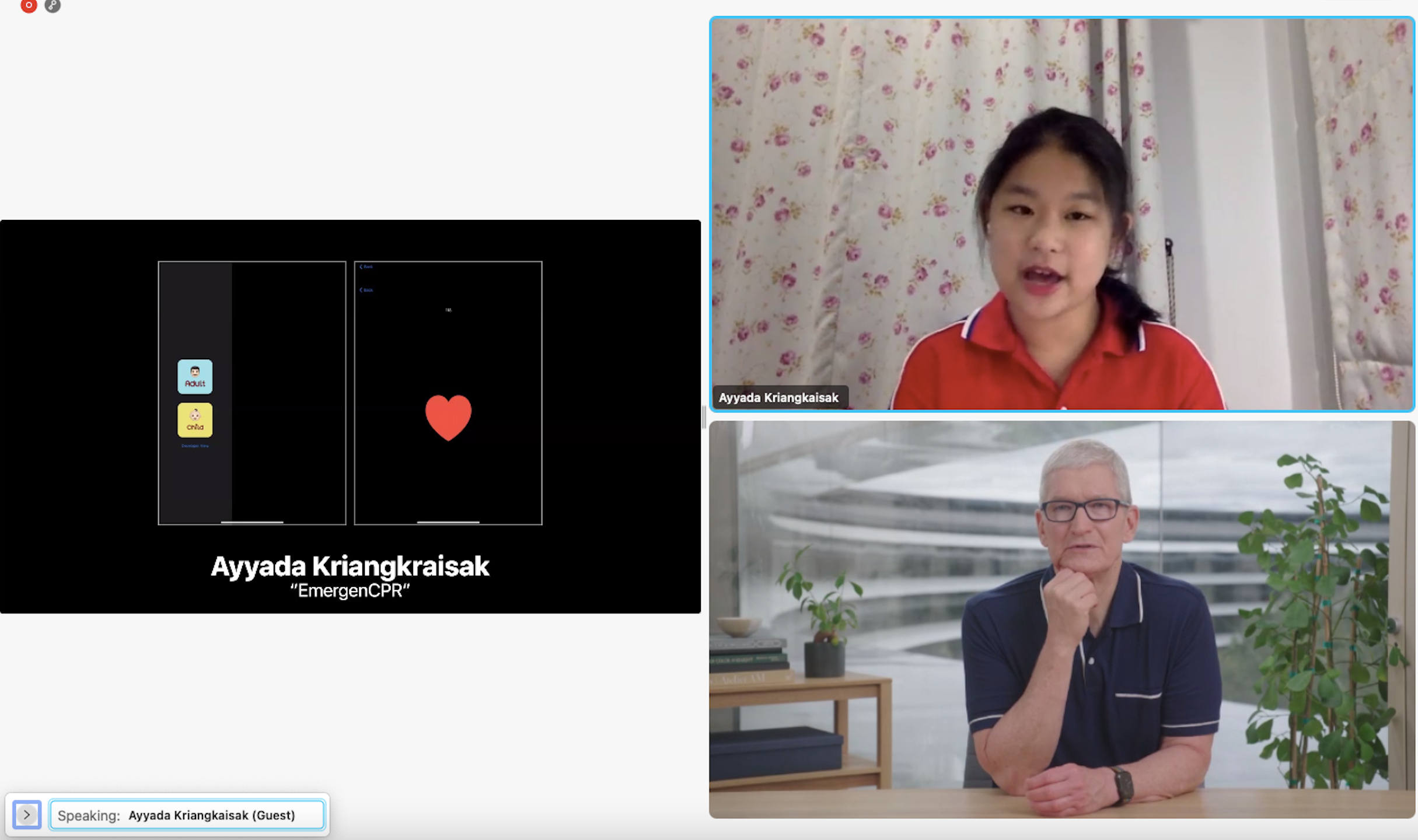 หนึ่งในความภูมิใจครั้งนี้ก็คือ น้องอินช์ชี่ ได้มีโอกาสนำเสนอผลงานกับ Tim Cook CEO ของ Apple ในงาน WWDC 2022 ผ่านออนไลน์ ซึ่งน้องอินช์ชี่เป็นนักเรียนไทยคนที่ 2 ต่อจากน้องพอใจ รางศรี ที่ได้นำเสนอผลงานของตัวเอง