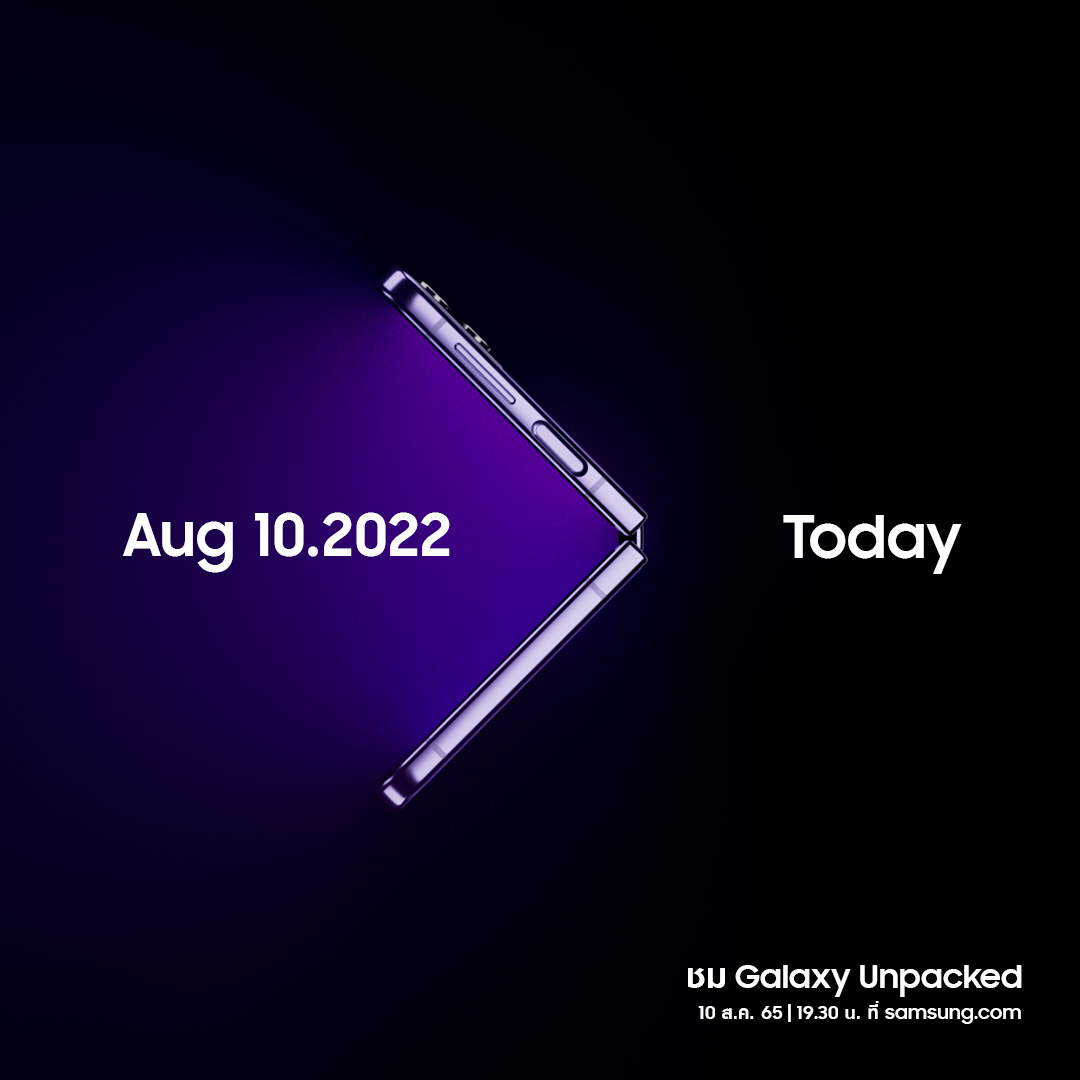 หลังจากปล่อยรูปมาให้ตื่นเต้นเล่น เช้านี้ Samsung ประกาศออกมาอย่างเป็นทางการแล้วว่า งานเปิดตัวสินค้าใหม่แบบ Virtual จะจัดขึ้นในวันที่ 10 สิงหาคม 2022 เวลาไทย 20.00 น. ส่วนสินค้าที่คาดว่าจะปล่อยออกมาให้อีเวนต์นี้ คือ  Galaxy Z flip 4, Galaxy Z fold 4, Galaxy Watch 5 และ หูฟังไร้สายตัวใหม่อีกด้วย ต้องติดตามดู