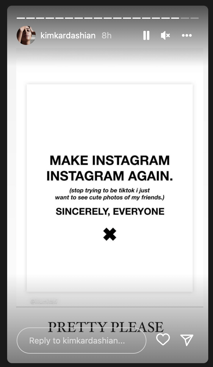ก่อนหน้านี้ทาง Mark Zuckerberg ผู้บริหารของ Meta ได้ประกาศอย่างชัดเจนว่า จะผลักดัน Instagram เพื่อแข่งกับ TikTok ที่มาแรงสุดๆ ด้วยการปรับการแสดงผลเนื้อหาบนหน้าฟีด จากเดิมที่โชว์เนื้อหาจากคนที่เราติดตามน้อยลง พร้อมนำ AI มาช่วยแนะนำให้เราเจอเนื้อหาที่คาดว่าเราจะสนใจจากคนที่เราไม่ได้กดติดตามมากขึ้น นอกจากนั้นยังมีการบังคับให้คลิปวิดีโอที่โพสต์ปรับให้เป็น Reels หรือวิดีโอแนวตั้งทั้งหมด เพื่อตามรอยความสำเร็จของ TikTok ที่กลายเป็นช่องทางยอดฮิตของคนรุ่นใหม่
