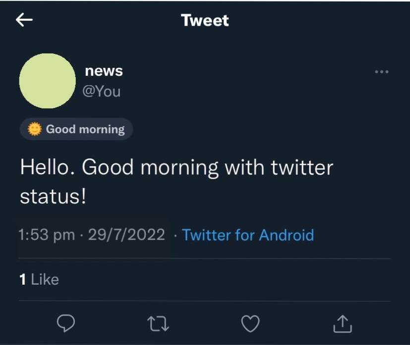 ในตอนนี้มีรายงานว่า “status” เหล่านี้ยังไม่สามารถเขียนกำหนดเองได้ ส่วนตัวอย่าง status ที่ Twitter มีมาให้ เช่น