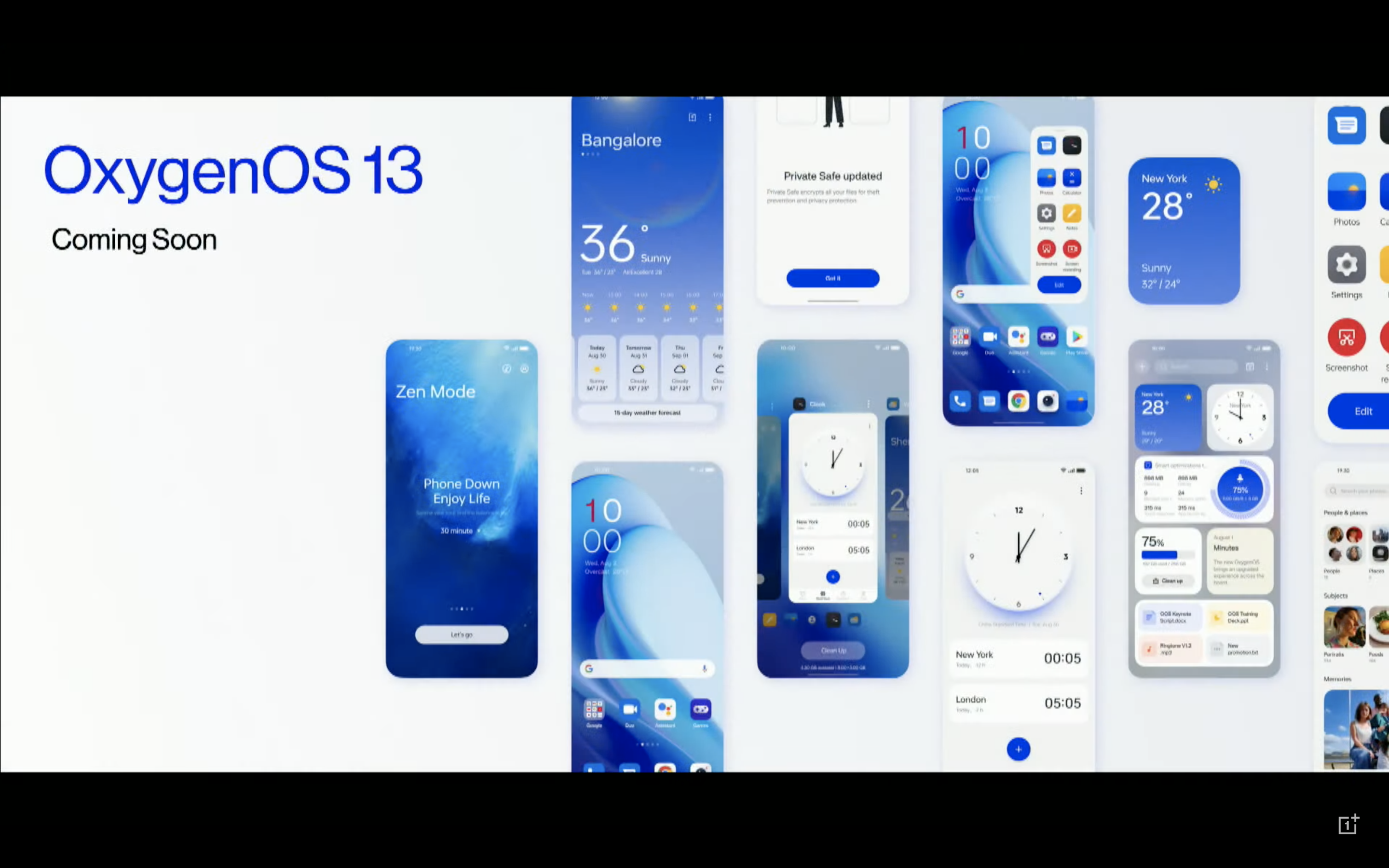 ส่วนระบบปฏิบัติการนั้นเป็น Android 12 ครอบทับด้วย OxygenOS 13 ได้แรงบันดาลใจจากน้ำ ที่ไม่มีรูปทรงแต่เคลื่อนที่ได้ลื่นไหล สวยงาม โดยเขาเรียกการออกแบบว่า Aquamorphic Design มีการปรับหน้าตาให้ดูใช้งานง่าย สวยงามขึ้น ปรับปรุง UI ให้เสถียรขึ้น สีหลักที่ใช้คือ Klein Blue