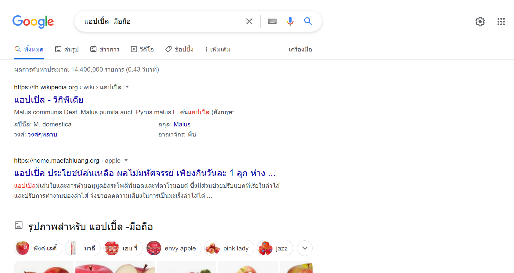 3.ใช้เครื่องหมายลบ – เพื่อจำกัดคำที่ไม่ต้องการออกไป
