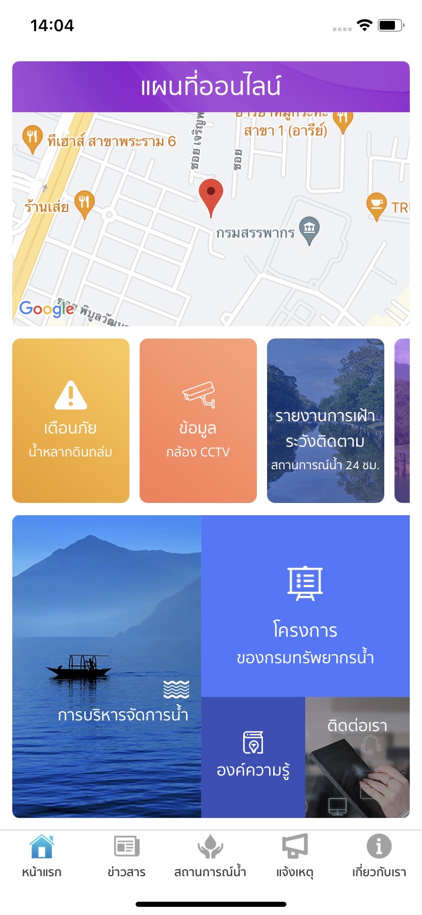 แอปพลิเคชั่นจากกรมกรมทรัพยากรน้ำ ช่วยให้ข้อมูลเรื่องสถานการณ์น้ำในไทย ซึ่งในแอปเขาจะมีข้อมูลเกี่ยวกับ เตือนภัย น้ำหลากดินถล่ม ข้อมูลจริงจากกล้อง CCTV รายงานการเฝ้าระวังติดตาม ปริมาณน้ำในอ่างเก็บน้ำ ระดับน้ำในแม่น้ำต่าง ๆ รวมถึงมีข้อมูลสภาพภูมิอากาศ และปริมาณน้ำฝนย้อนหลังให้เราเช็คได้ด้วย และหากเราพบเห็นสถานการณืที่ไม่ปกติ เราสามารถส่งเรื่องผ่านแอปได้เลย