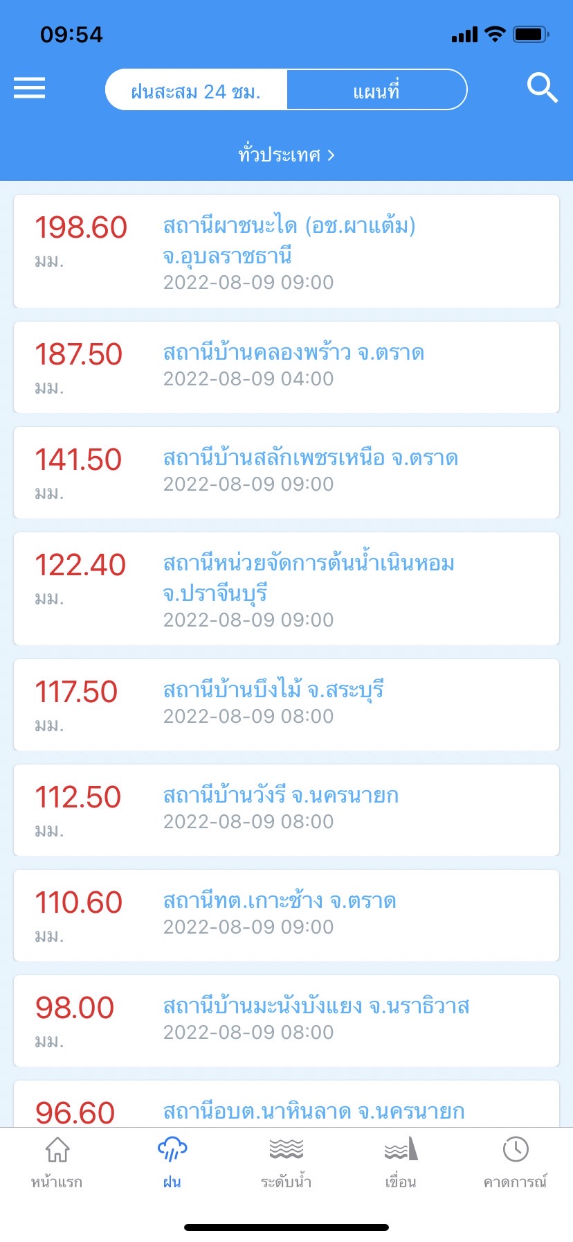 แอปพลิเคชั่นรายงานสถานการณ์อากาศและน้ำของประเทศไทย ซึ่งใช้ข้อมูลจากคลังข้อมูลน้ำแห่งชาติ ในแอปพลิเคชั่นจะรายงานเรื่องสภาพอากาศในภาพรวม มีพายุหรือไม่มี ปริมาณน้ำในแต่ละจังหวัดเป็นอย่างไร มีการคาดการณ์ของฝนที่จะตกในแต่ละวันด้วย นอกจากนี้ในหัวข้อ “ฝน” แจ้งเกี่ยวกับระดับน้ำฝนในแต่ละพื้นที่ทั่วประเทศไทย โดยแบ่งเป็นระดับสีจากแดงไปเขียวอีกด้วย นอกจากระดับฝนแล้วยังแจ้งมีระดับน้ำในแต่ละพื้นที่ว่ามีน้ำล้นตลิ่ง น้ำมาก หรือน้ำปกติ ในหัวข้อ “ระดับน้ำ” ส่วนหัวข้อ “เขื่อน” จะแจ้งข้อมูลระดับการที่กักเก็บและระดับน้ำที่ใช้จากเขื่อนต่าง ๆ อีกดเวย ถือว่าแอปพลิเคชั่นที่ช่วยให้เราคาดการณ์สถานการณ์น้ำท่วมได้ทันท่วงที
