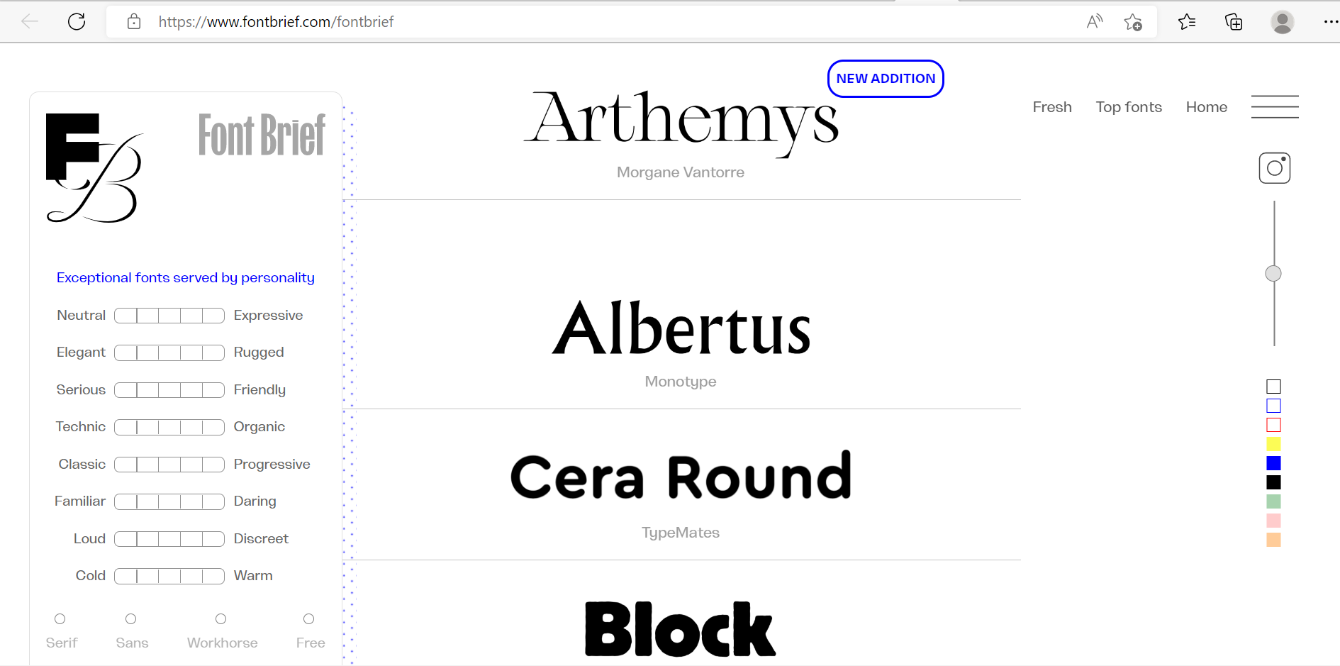 ก่อนอื่นต้องรู้ก่อนว่าเราได้อยากฟอนต์ที่ให้ความรู้สึกแบบไหน ดูคลาสสิก? หรูหรา? จริงจัง? ด้านในเว็บไซต์จะมีรูปแบบของฟอนต์ 8 หัวข้อให้เราเลือก และมีระดับให้เราเลือกว่าอยากให้ฟอนนั้นมีความรู้สึกแบบนั้นมากน้อยเพียงใด เลือกรูปแบบฟอนต์ว่าอยากให้เป็นแบบ Sans หรือ Serif หรือเลือกฟอนต์ฟรีก็มีให้ ! เมื่อได้ฟอนต์ที่ต้องการ ให้คลิกเพื่อไปอีกหน้าเว็บ จะปรากฏตัวอย่างการใช้รูปแบบฟอนต์นั้นให้เราได้ดูด้วย ลองปรับสีหรือขนาดได้เลย หากใครสนใจใช้ฟอนต์ในเชิงพาณิชย์แต่ฟอนต์ไม่ฟรี แค่นี้เราก็ได้ฟอนต์ตามที่เราต้องการแล้ว