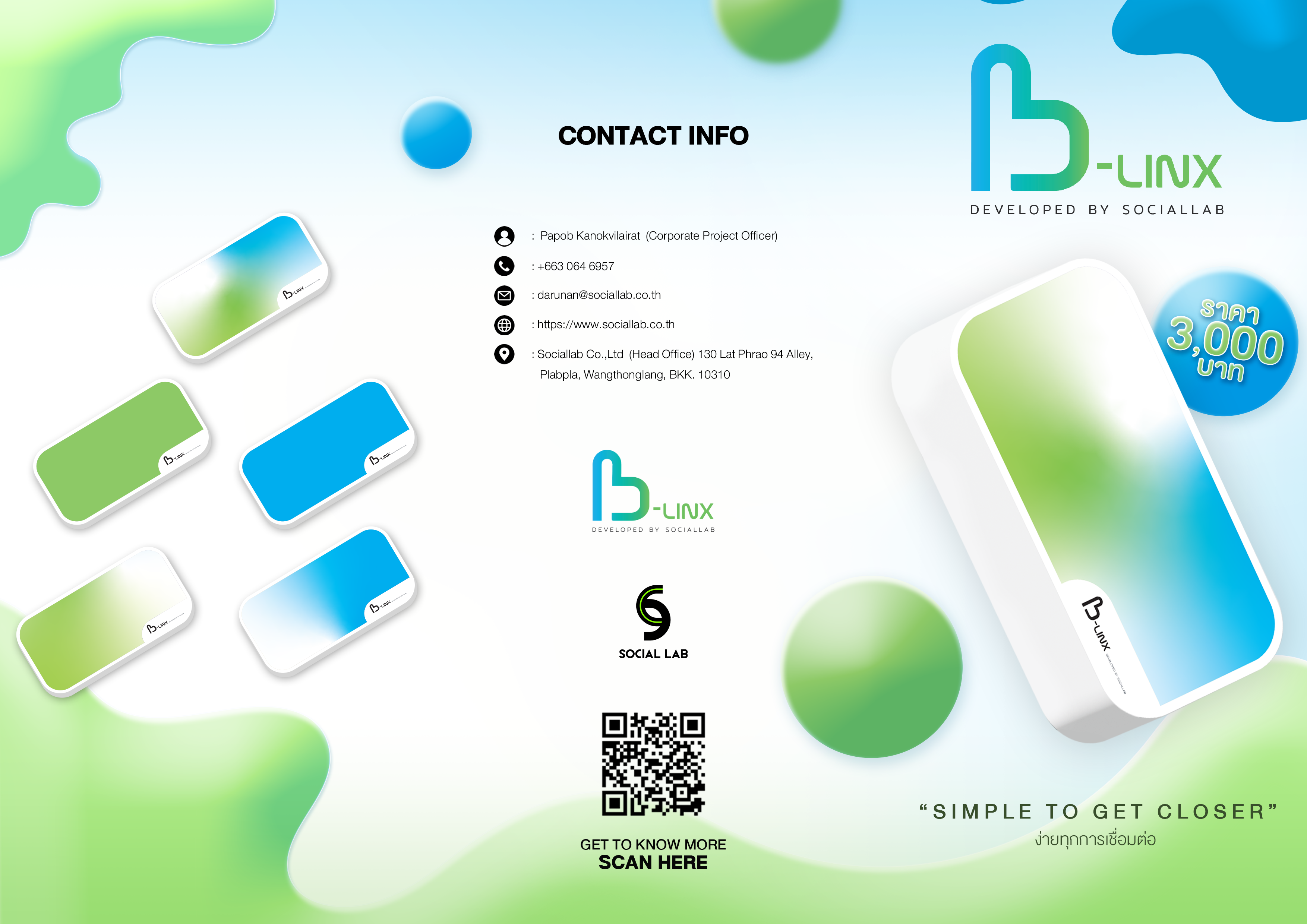 ราคาของ B-LINX มาพร้อม Basic Solution อยู่ที่เครื่องละ 3,000 บาทเท่านั้น สำหรับคนที่สนใจสามารถติดต่อได้ผ่านช่องทางด้านล่างได้เลยค่ะ
