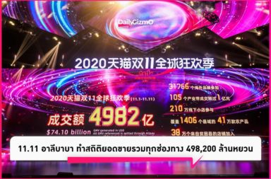 อาลีบาบา กรุ๊ป ประกาศสถิติยอดขายจากมหกรรมช้อปปิ้งระดับโลก 11.11 ปี 2563 รวมทั้งสิ้น 498,200 ล้านหยวน (ราว 2,278,000 ล้านบาท) ซึ่งรวบรวมจากยอดขายทุกช่อง…