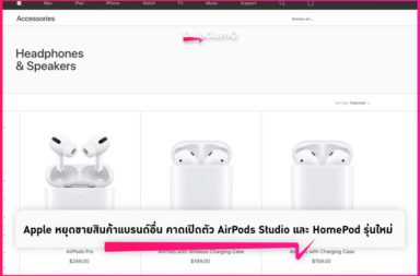 ในช่วงปลายเดือนกันยายนที่ผ่านมา ทางร้านออนไลน์ของ Apple ได้ทำการหยุดขายหูฟังและลำโพงของแบรนด์อื่น คาดเตรียมผลิตภัณฑ์ใหม่อย่าง AirPods Studio และ HomePo…