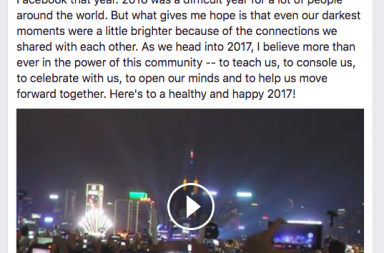 Mark Zuckerberg Mark Zuckerberg โพสต์คลิปวิดีโอเรื่องราวเด่นๆที่เกิดขึ้นในปีที่ผ่านมา เพื่อส่งท้ายปีเก่า ต้อนรับปีใหม่ ไปดูกันดีกว่าว่ามีเรื่องราวอะไร…