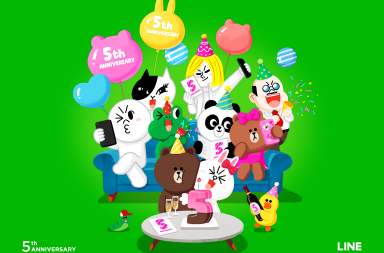 LINE ครบรอบ 5 ปีวันก่อตั้งบริษัท LINE ครบรอบ 5 ปี ในโอกาสนี้ ทางไลน์จึงได้ลดราคาสติกเกอร์ LINE Character ลด 50% แถมด้วยโทรฟรีด้วย LINE Out Calls เป…