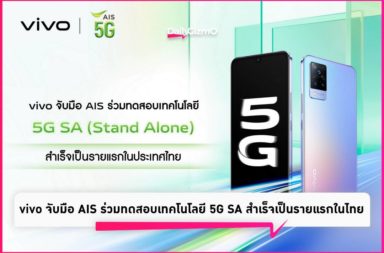 vivo เดินหน้าดำเนินการทดสอบเทคโนโลยีการเชื่อมต่อ 5G SA (Stand Alone) ในประเทศไทย ร่วมกับเครือข่าย AIS 5G ที่มีคลื่นครบที่สุด ปริมาณมากสุด พร้อมครอบคลุม…