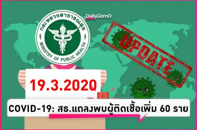 ตามแถลงการณ์เกี่ยวกับสถานการณ์ของ COVID-19 ของกระทรวงสาธารณสุขวันนี้ (19.3.2563) พบผู้ติดเชื้อเพิ่ม 60 ราย รวมติดเชื้อทั้งหมด 272 ราย ผู้…
