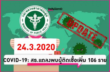แถลงการณ์ของกระทรวงสาธารณสุขเกี่ยวกับสถานการณ์ของ COVID-19 วันนี้ (24.3.2563) พบผู้ติดเชื้อเพิ่ม 106 ราย รวมติดเชื้อทั้งหมด 827 ราย ผู้ติ…