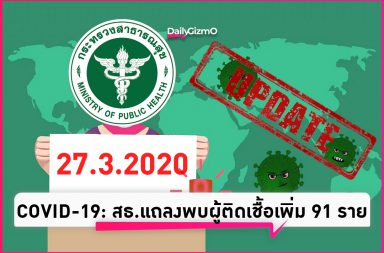 แถลงการณ์ของกระทรวงสาธารณสุขเกี่ยวกับสถานการณ์ของ COVID-19 วันนี้ (27.3.2563) พบผู้ติดเชื้อเพิ่ม 91 ราย รวมติดเชื้อทั้งหมด 1,136 ราย ผู้ต…