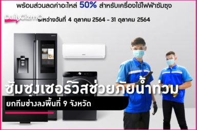 ซัมซุงเซอร์วิสช่วยภัยน้ำท่วม ยกทีมช่างลงพื้นที่ 9 จังหวัด ดูแลเครื่องใช้ไฟฟ้าซัมซุงถึงบ้าน ไม่มีค่าบริการเพิ่ม พร้อมส่วนลดค่าอะไหล่ 50%จากอิทธิพลขอ…
